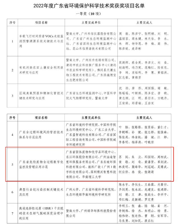 | 2022年,東江環保參與的廣東省危險廢物全過程數字化監控及管理應用示范項目榮獲2022年度廣東省環境保護科學技術一等獎,公司數智化建設取得實質突破。 | |