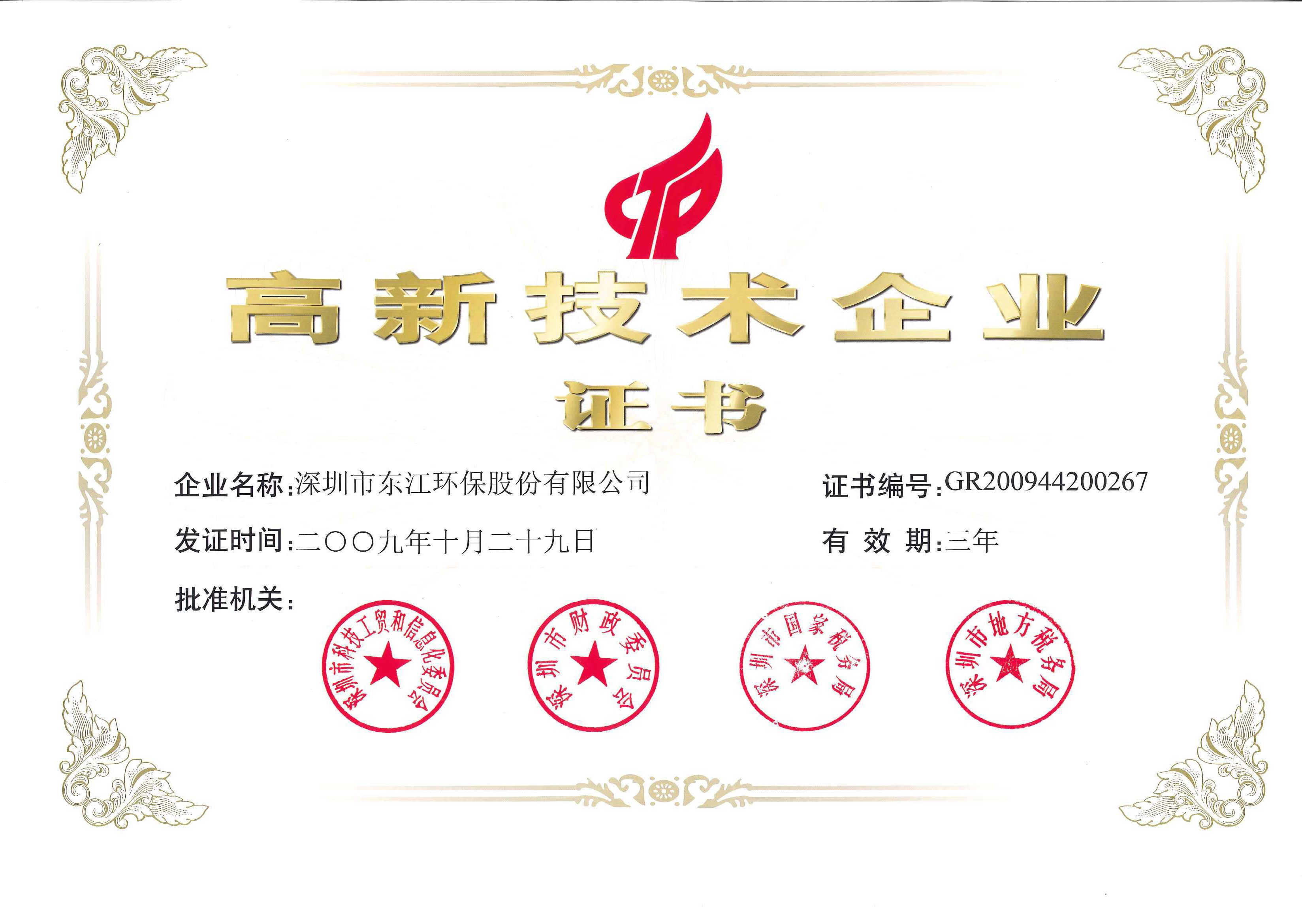 2009年10月 國家高新技術企業(yè)